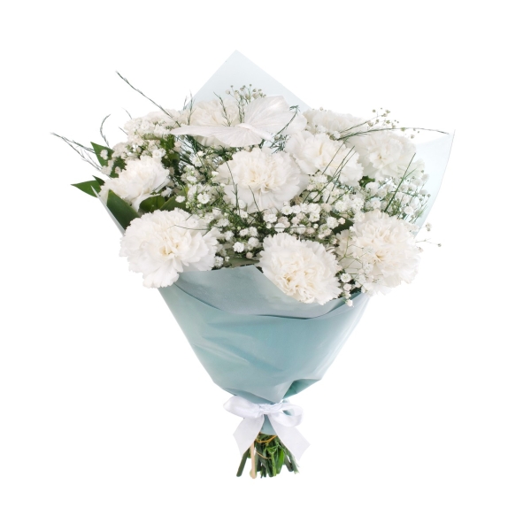 Ürün Kodu: Arm9811 Adet Beyaz karanfil ve Yeşillikler Şık Buket armeriacicek.com ile her anınızda yanınızdayız... tek tıkla kemerin tüm beldelerine çiçek teslimatı