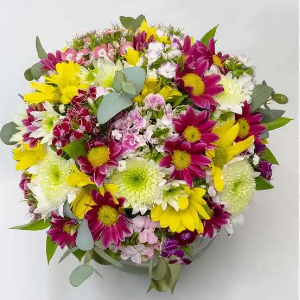 Ürün Kodu: Arm76Renkli Krizantem 11 Adet ve Hüsnüyusuf çiçeği Yeşillikler ile hazırlanmıştır. armeriacicek.com ile sevdiklerinize en güzel çiçekleri gönderin...