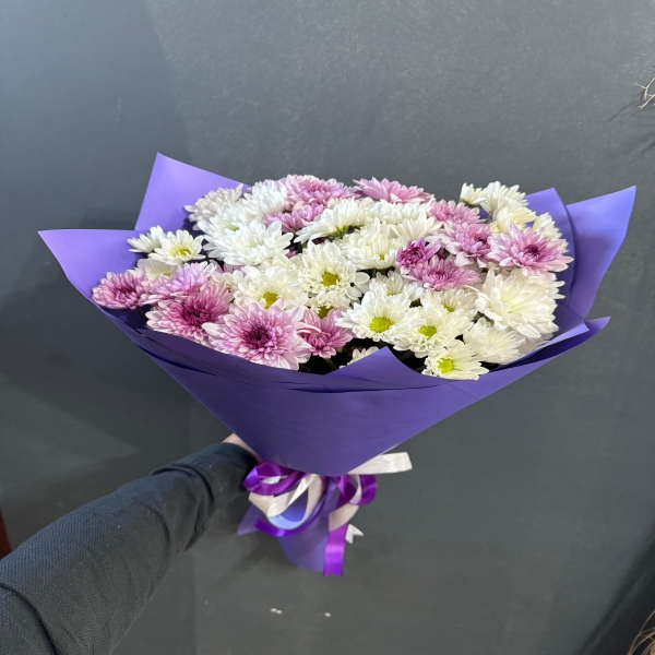 Kemer Çiçek Mor Beyaz Papatya Buket  Kemer Çiçek Mor Beyaz Papatya Buket