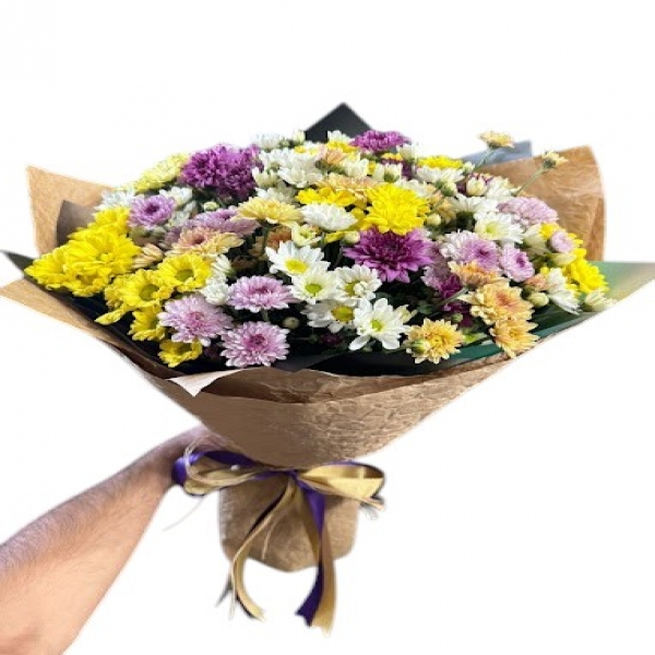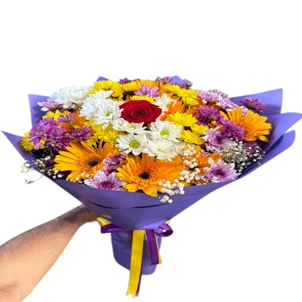 Kemer Çiçek Siparişi Şık Sarı Mor Buket Karışık  Kemer Çiçek Siparişi Şık Sarı Mor Buket Karışık