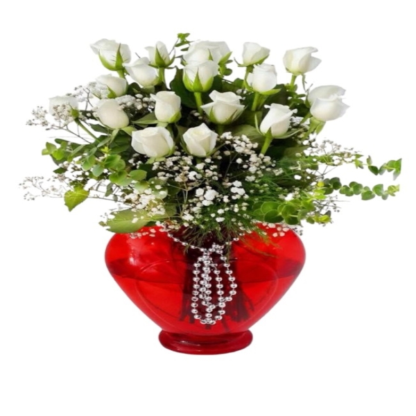 Ürün Kodu: Arm159Kalp Vazoda 19 Adet Beyaz Güller ve Yeşillikler İle Hazırlanmıştır.. armericicek.com ile Sevdiklerinize En Güzel Taze Çiçekleri Gönderin...