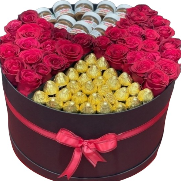 Ürün Kodu: Arm30Siyah Silindir Büyük Kutuda 37 Adet Kırmızı Güller ve 10 Adet Nutella ve Ferrore Rocher veya Çikolata ile Hazırlanmıştır... armeriacicek.com ile